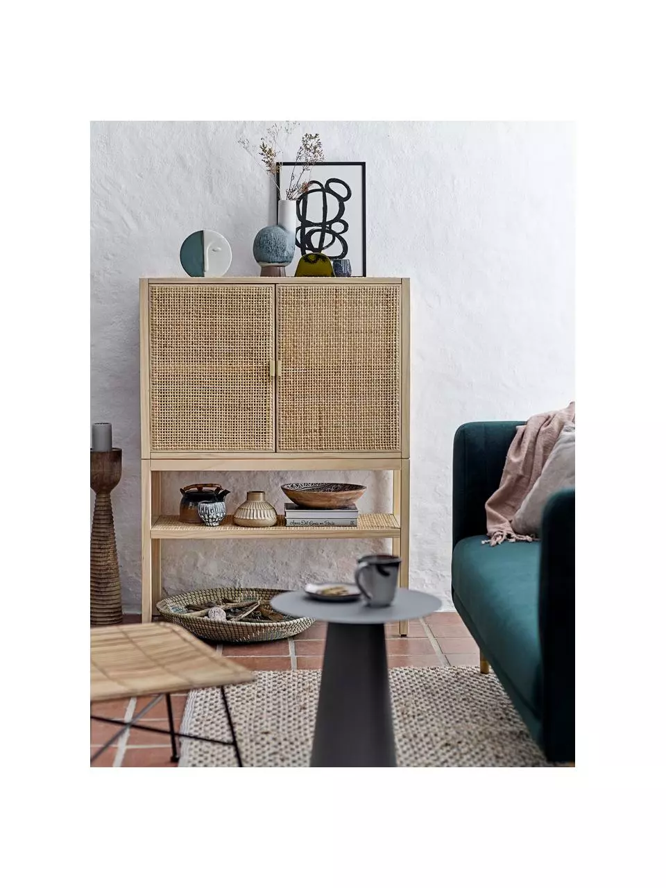Highboard aus Rattan und Kiefernholz mit 2 Türen