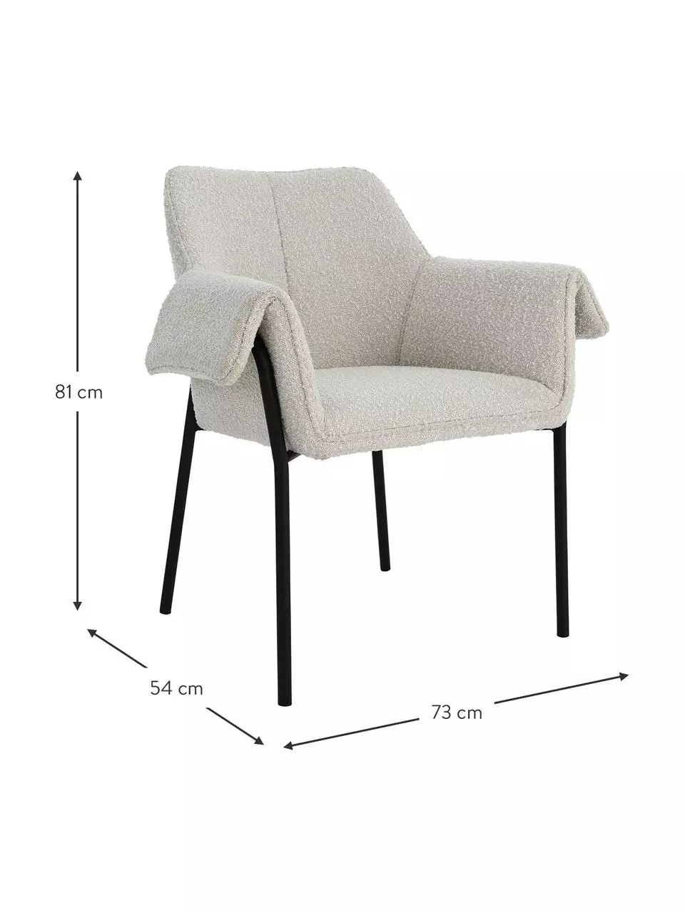 B 73 cm, H 81 cm, T 54 cm