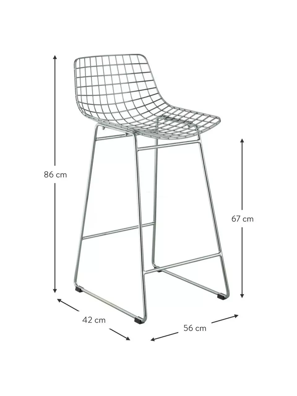 HKliving Metall-Thekenstuhl Wire in Chrom, B 56 x H 86 cm