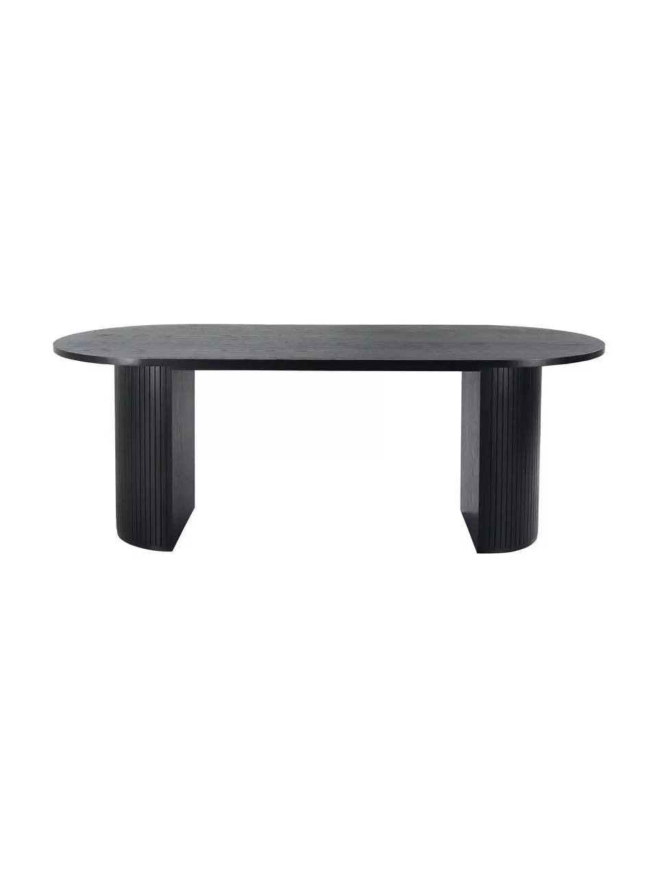 Die zwei breiten Tischbeine mit geriffelter Front machen den Tisch zu einem stylischen Hingucker.