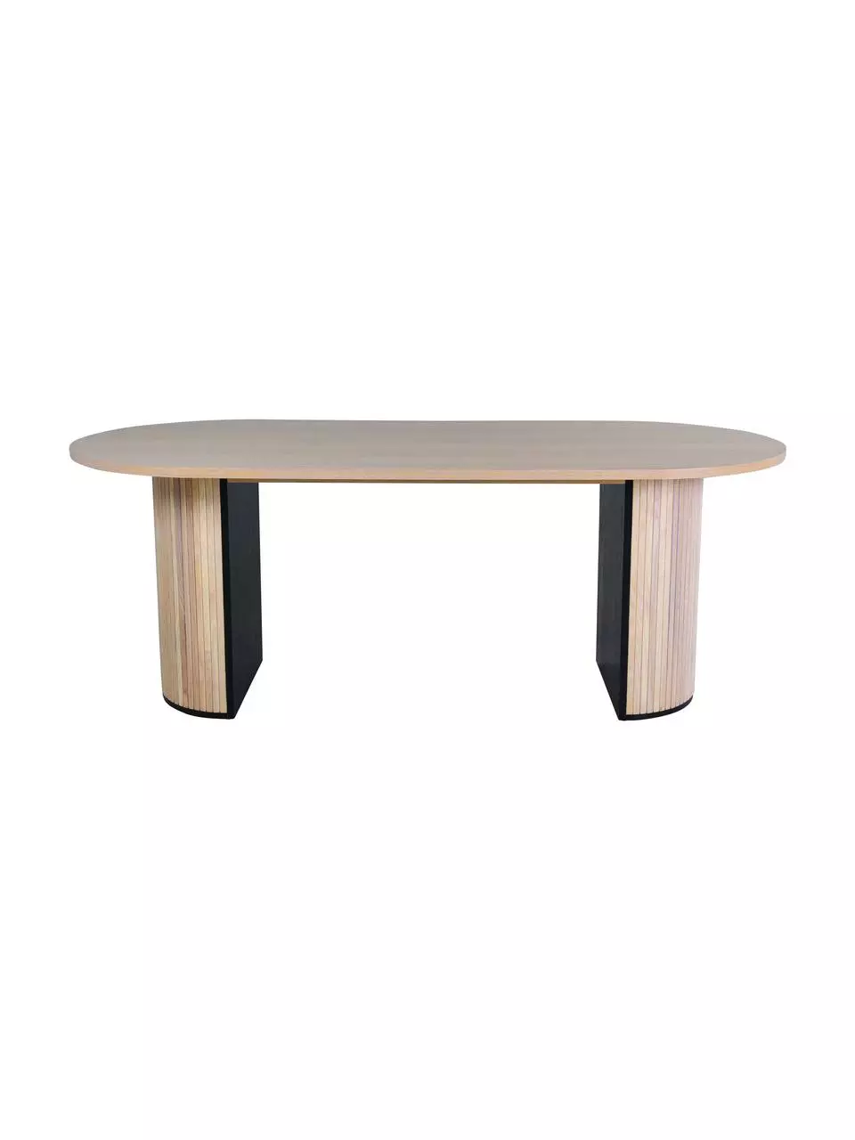Die zwei breiten Tischbeine mit geriffelter Front machen den Tisch zu einem stylischen Hingucker.