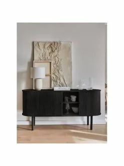 Rowico Schwarzes Sideboard Fenwood mit Schubladen mit Eichenholzfurnier, B 160 x H 79 cm
