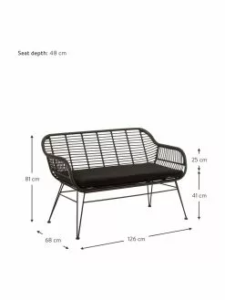 Westwing Collection Polyrattan-Sitzbank Costa in Schwarz, B 126 x H 81 cm