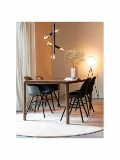 Der Esstisch wird platzsparend flach verpackt geliefert und erfordert als Montageaufwand das Anbringen der Beine an die Tischplatte.
