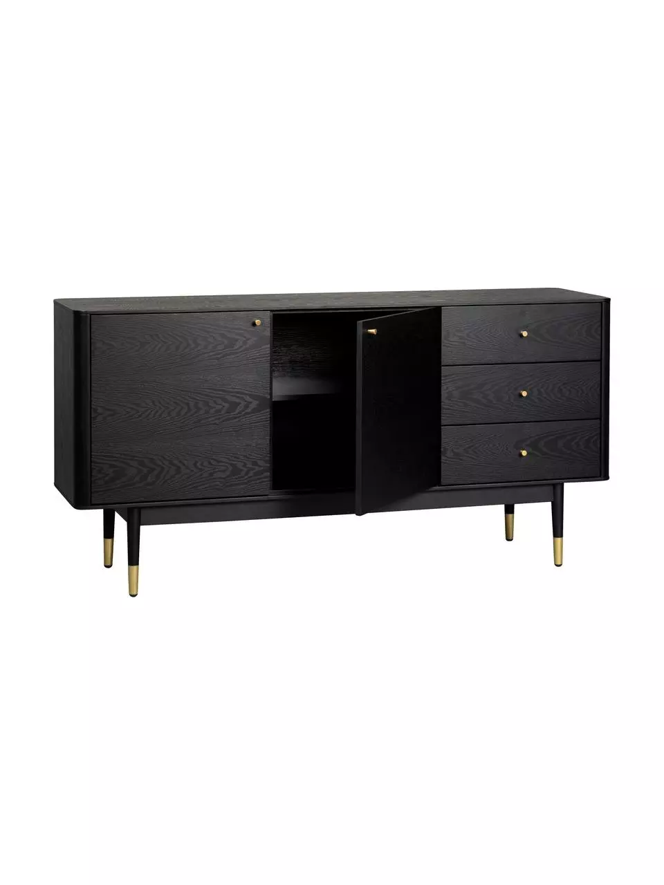 Korpus: Mitteldichte Holzfaserplatte (MDF), Eichenholzfurnier, gebeizt lackiert