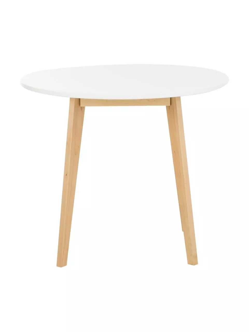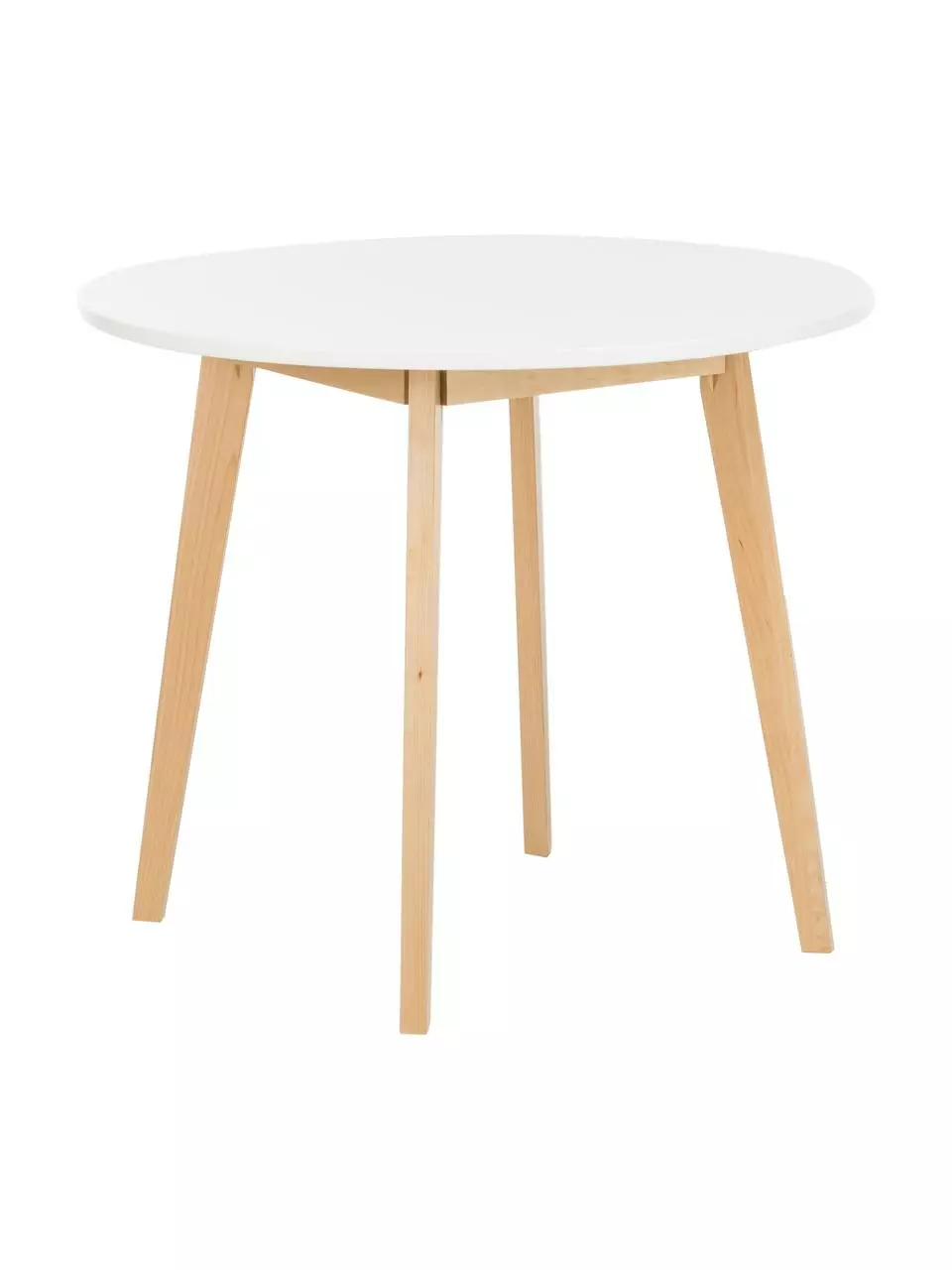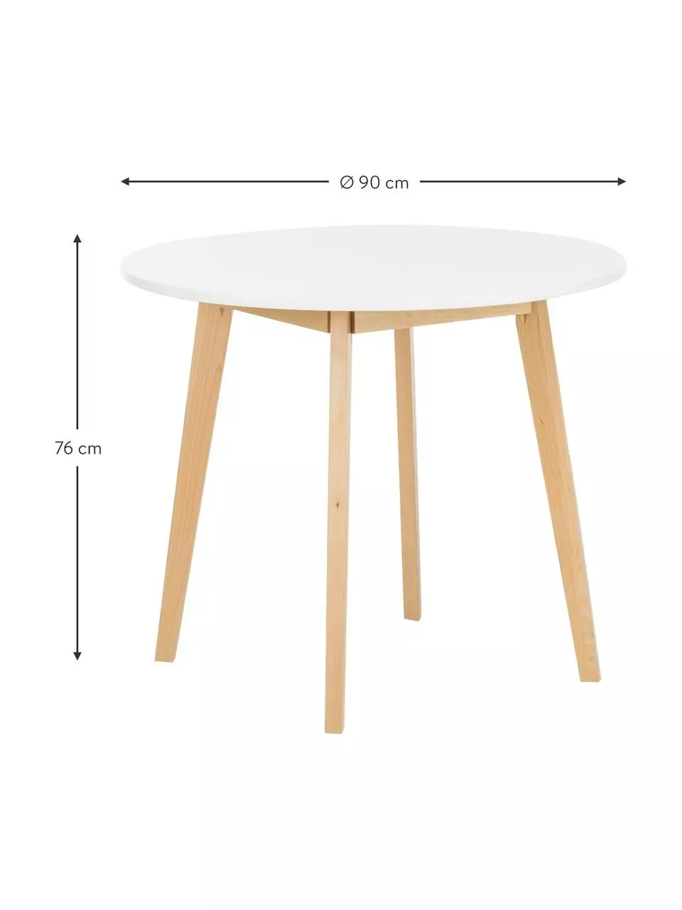 – Runder kleiner Esstisch mit weiß matt lackierter Tischplatte