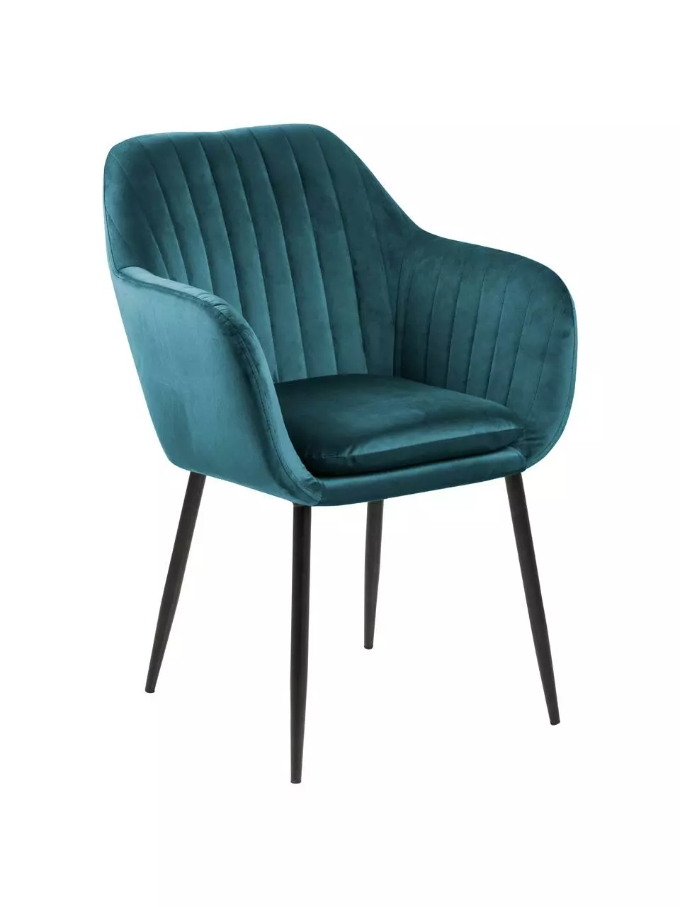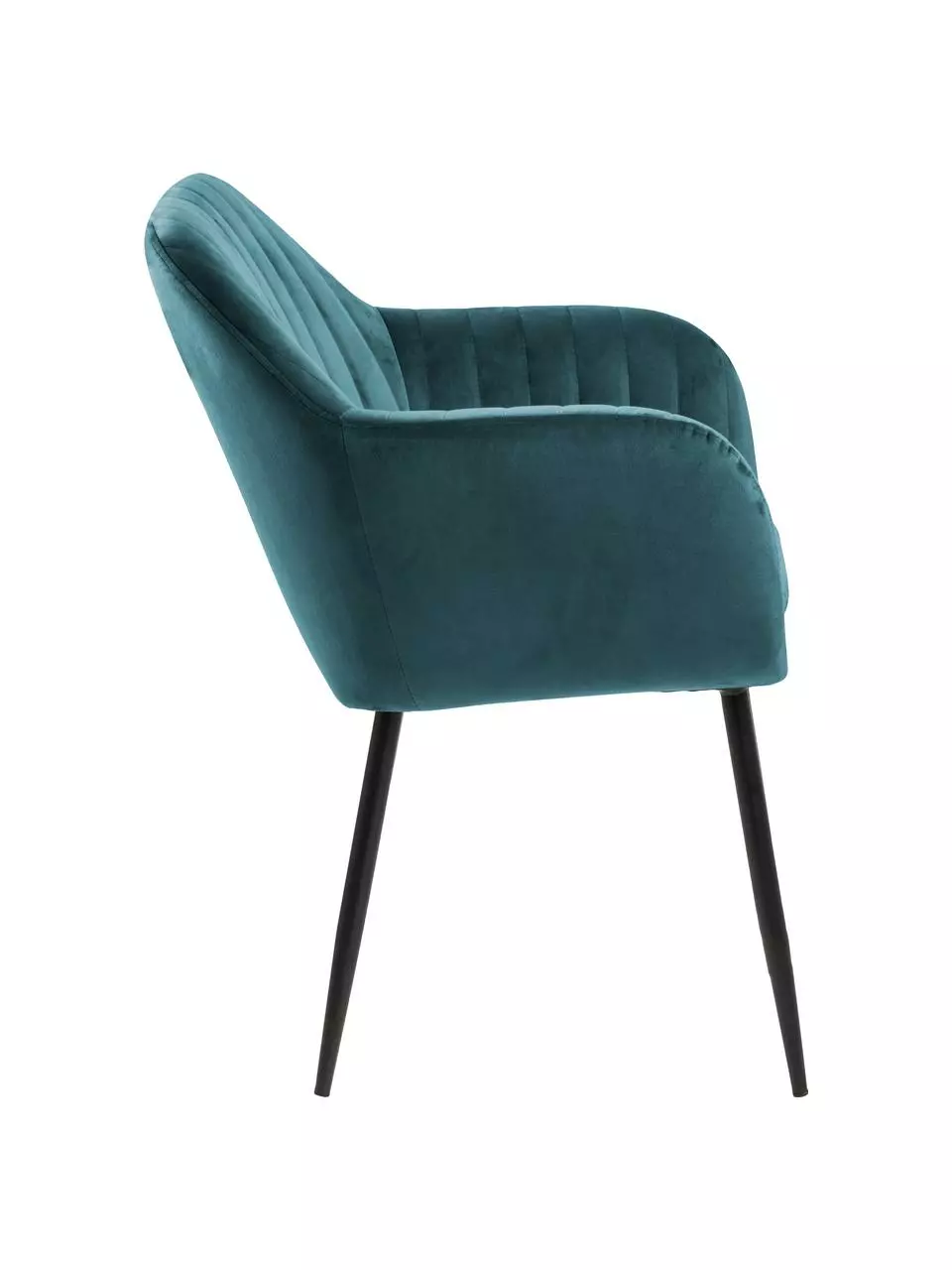 Samt-Armlehnstuhl Emilia in Blau mit Metallbeinen, B 57 x T 59 cm