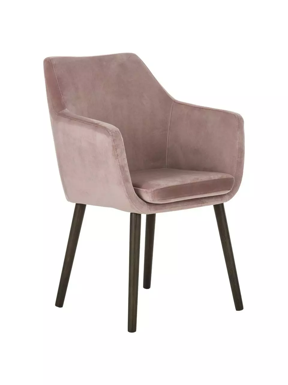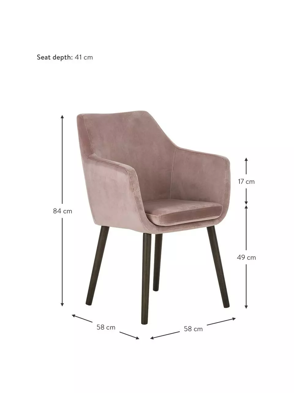 Schmaler Samt-Armlehnstuhl mit kleiner Sitzfläche