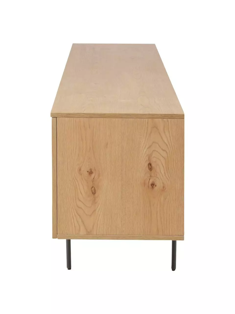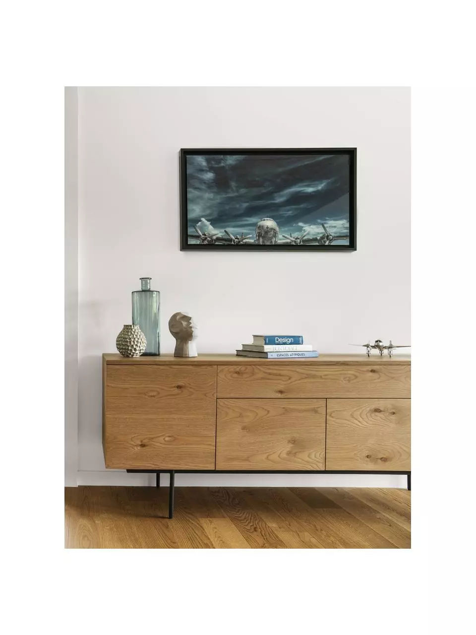 Das Sideboard wird platzsparend flach verpackt geliefert und benötigt nach dem Auspacken als Montageaufwand den Aufbau des kompletten Sideboards. Um eine größtmögliche Sicherheit gewährleisten zu können, ist für dieses Möbelstück eine Wandmontage vorgesehen. Nutzen Sie dafür bitte den beigelegten Wandbeschlag. Schrauben und Dübel sind entsprechend der Wandbeschaffenheit zu wählen.