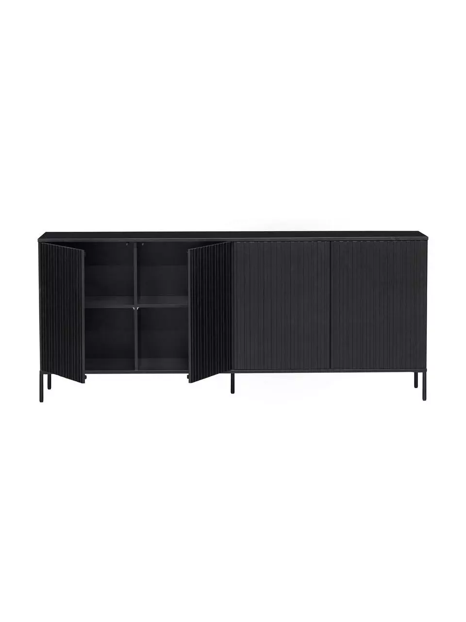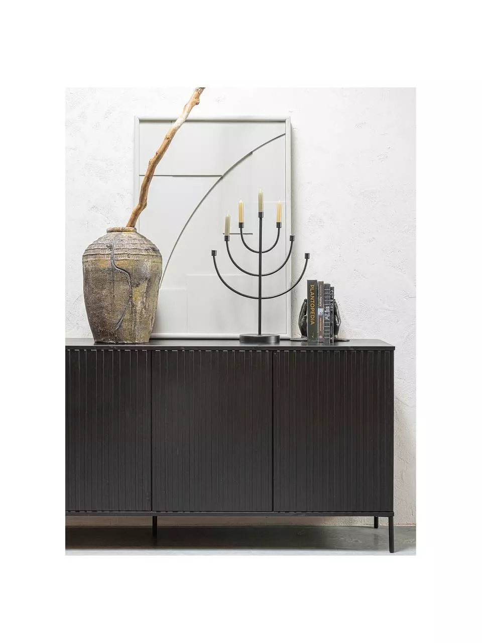Das Sideboard wird platzsparend flach verpackt geliefert und benötigt nach dem Auspacken als Montageaufwand den Aufbau des kompletten Sideboards. Um eine größtmögliche Sicherheit gewährleisten zu können, ist für dieses Möbelstück eine Wandmontage vorgesehen. Nutzen Sie dafür bitte den beigelegten Wandbeschlag. Schrauben und Dübel sind entsprechend der Wandbeschaffenheit zu wählen.