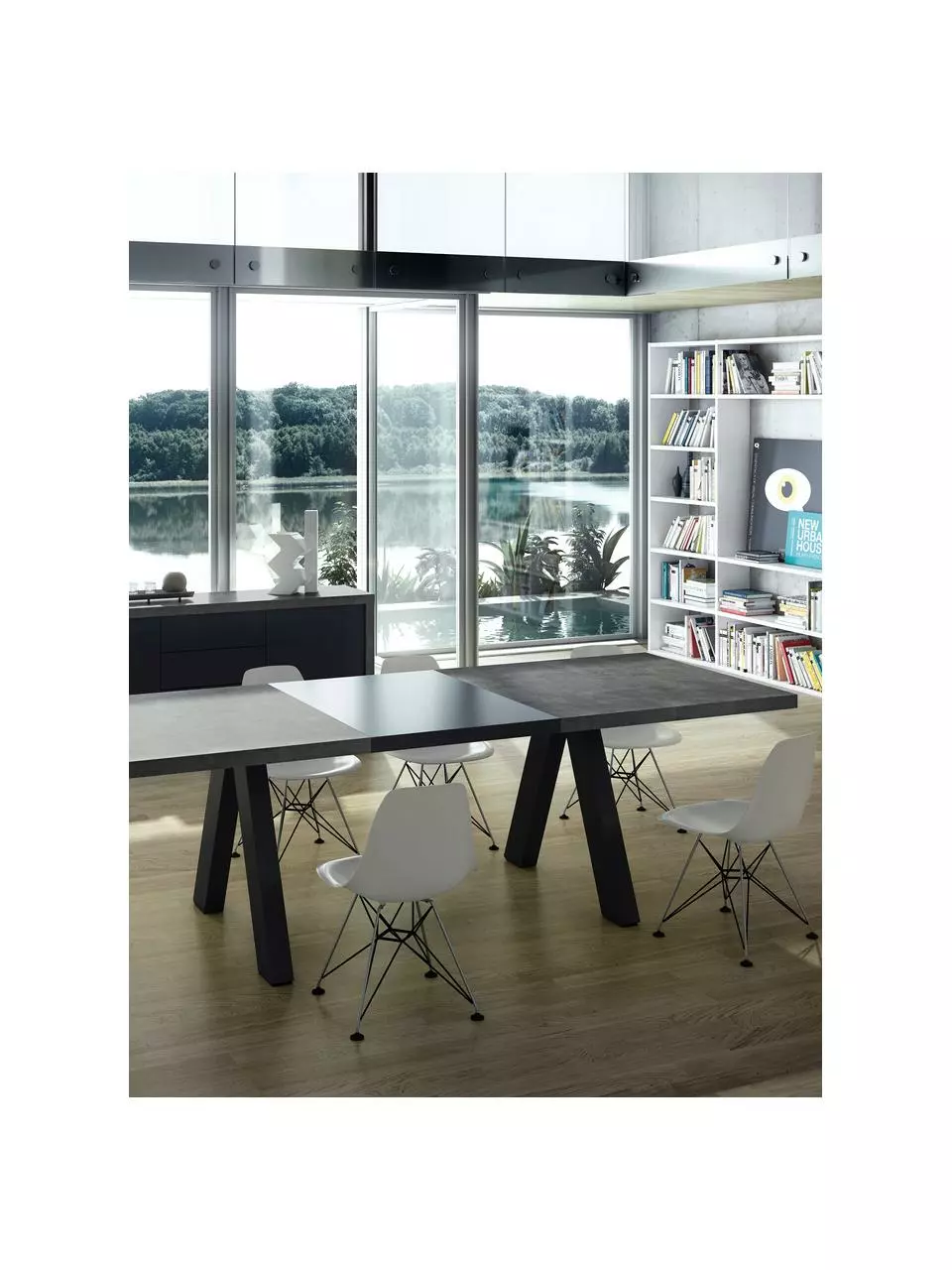 – Verlängerbarer Esstisch mit Tischplatte in Wabenstruktur Leichtbauweise