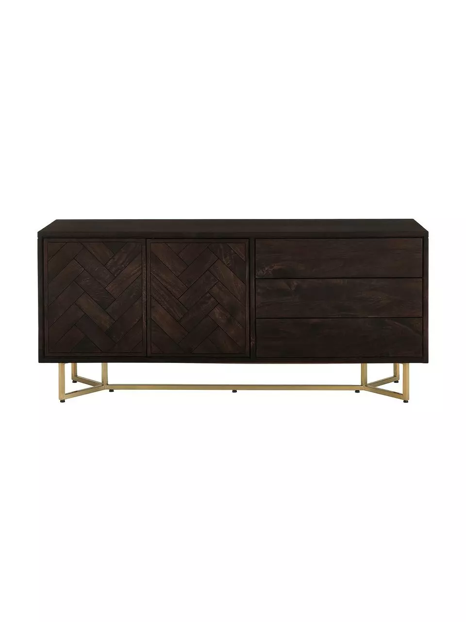 Westwing Collection Fischgrät-Sideboard Luca mit Türen aus Massivholz, B 160 x H 70 cm