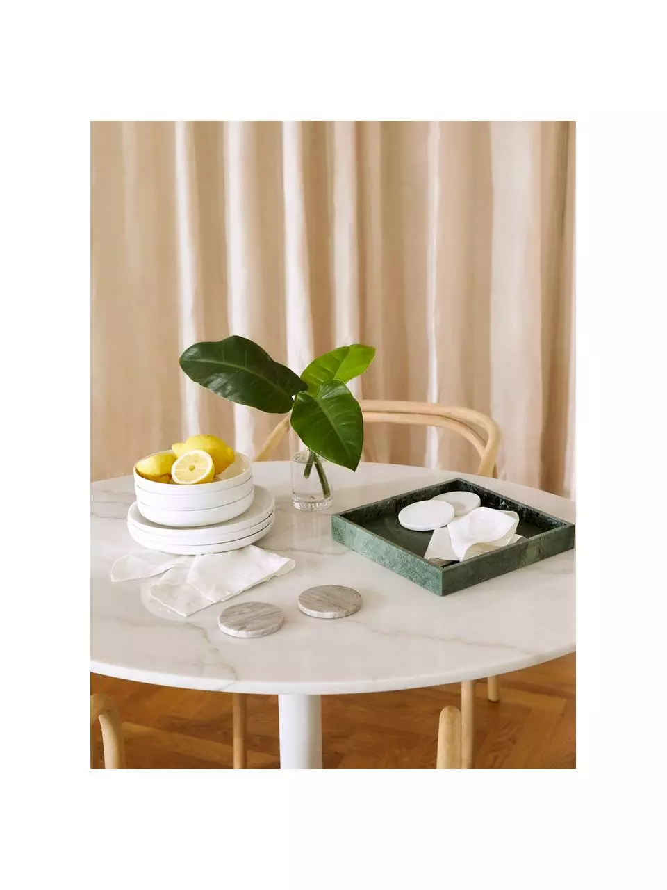 Da Marmor ein Naturprodukt ist, können Abweichungen in Farbe und Marmorierung auftreten. Jedes Produkt ist ein Einzelstück! Um eine hohe Langlebigkeit des Proukts zu garantieren, wurde die Unterseite der Marmorplatte zur Verstärkung mit Melamin versehen.