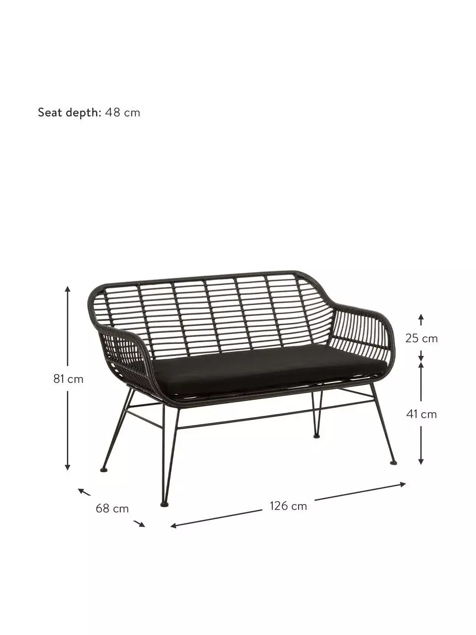B 126 cm, H 81 cm, T 68 cm