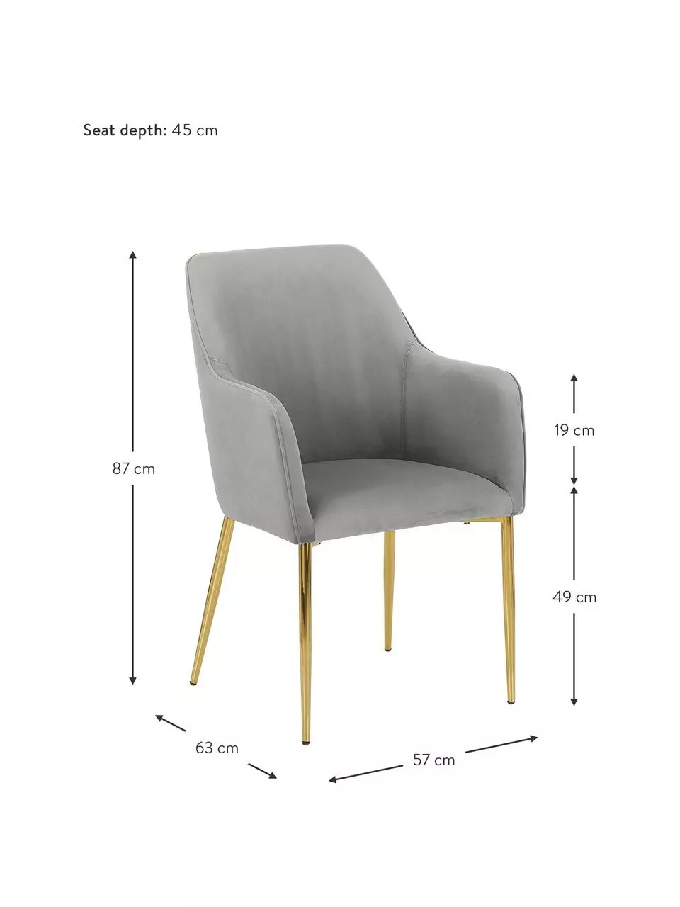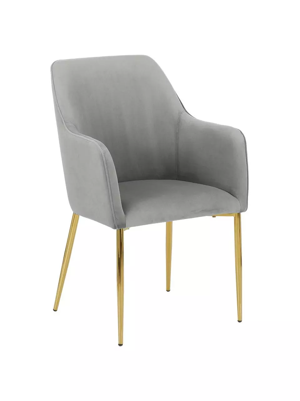 Westwing Collection Samt-Armlehnstuhl Ava in Grau, B 57 x T 63 cm