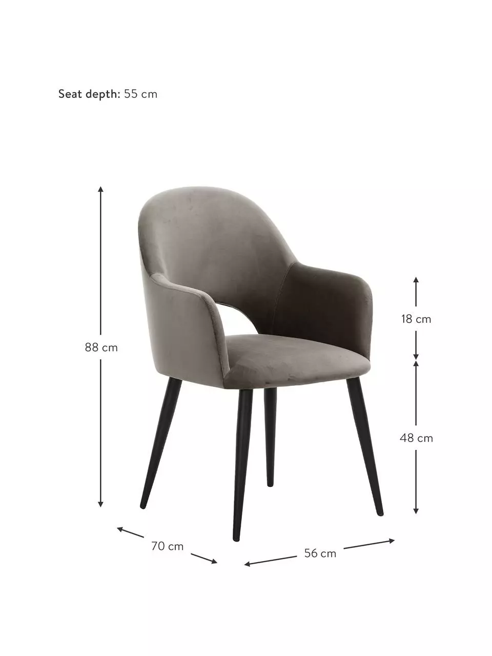 B 56 cm, H 88 cm, T 70 cm