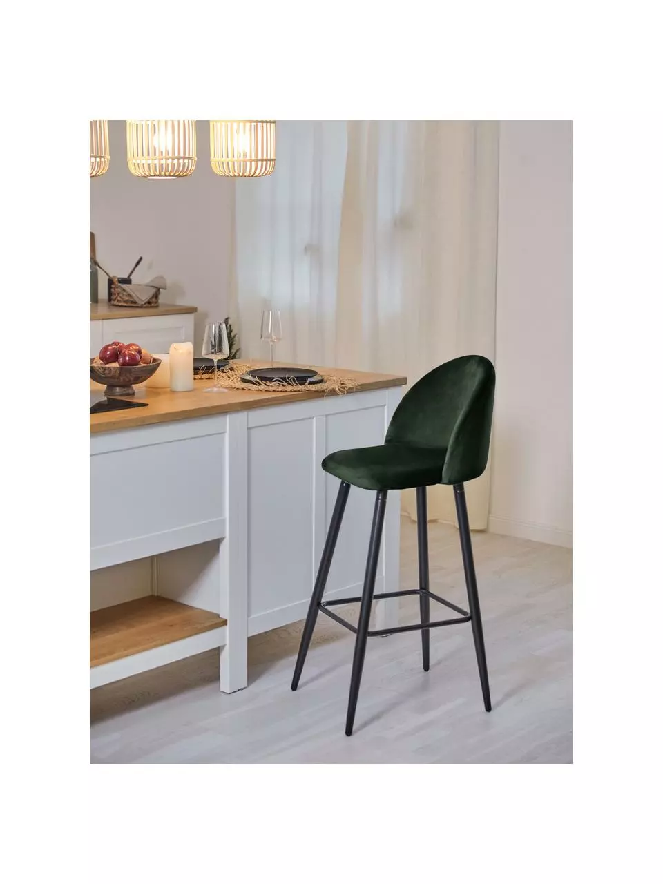 – Samt-Barstuhl mit Fußstütze