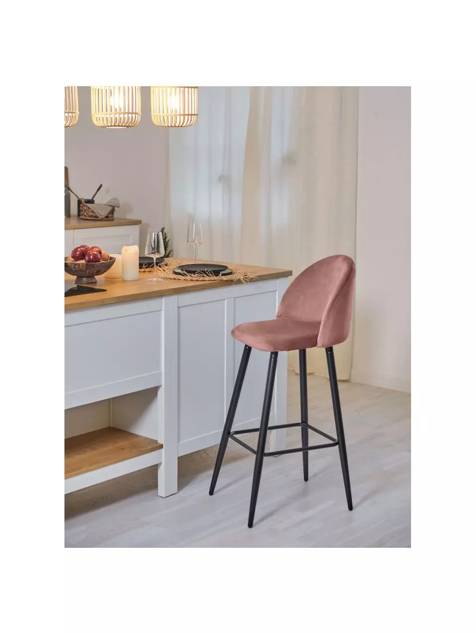 – Samt-Barstuhl mit Fußstütze