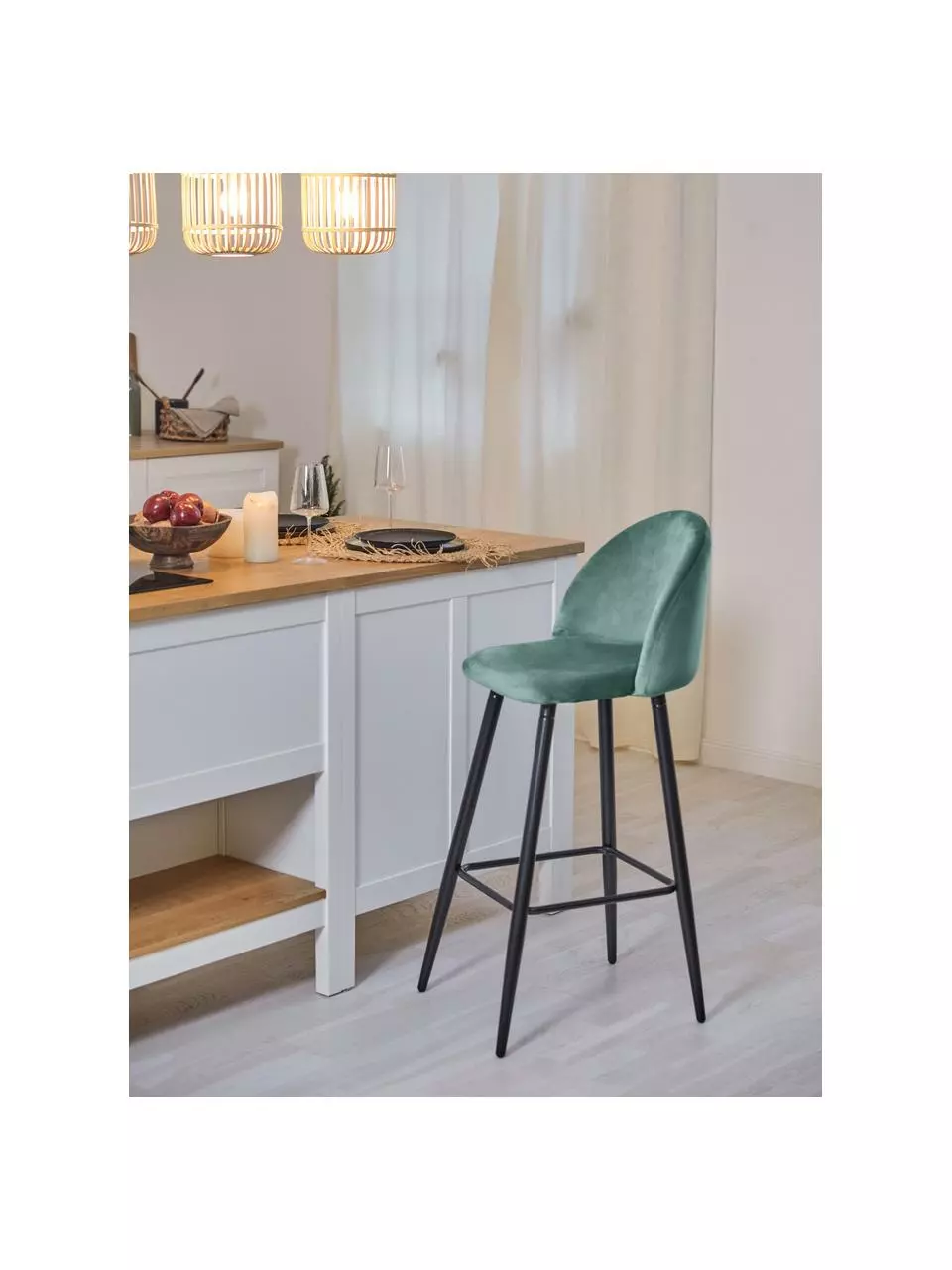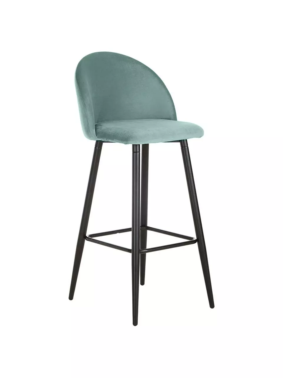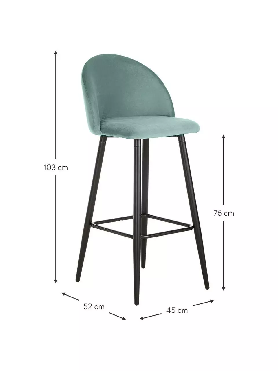 Westwing Collection Samt-Barstuhl Amy in Türkis, B 45 x H 103 cm
