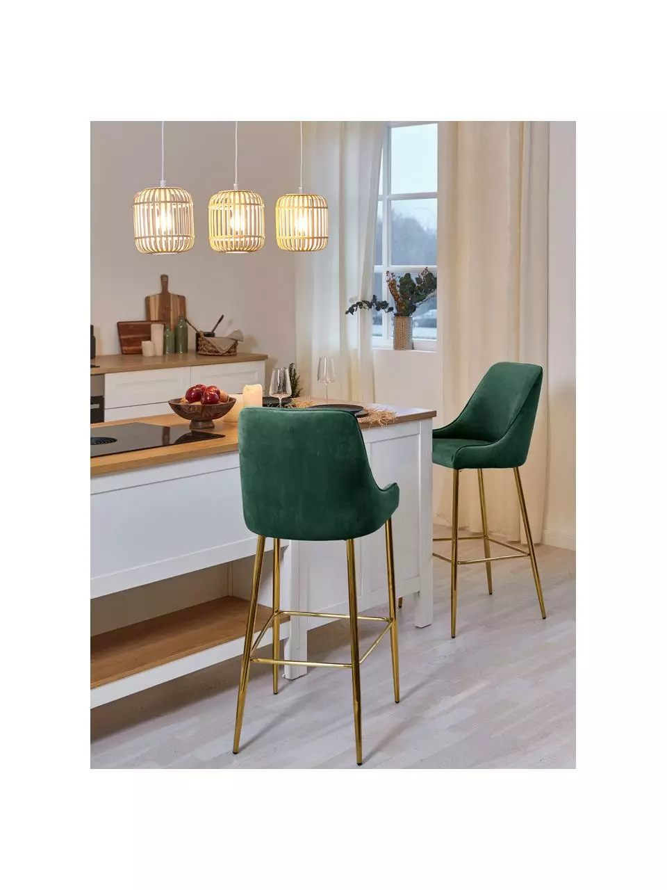 Westwing Collection Samt-Barstuhl Ava in Dunkelgrün, B 48 x H 107 cm