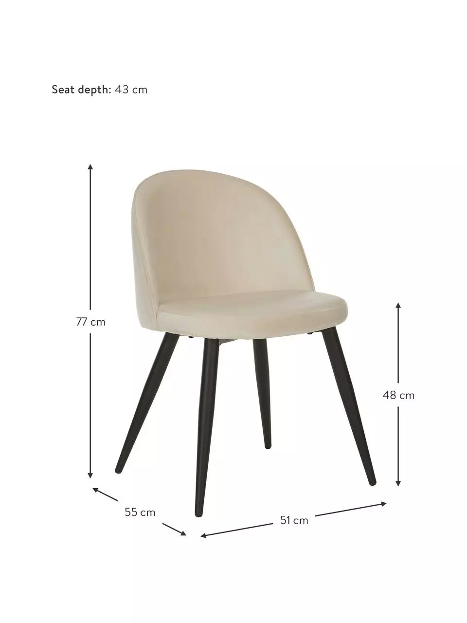 Je B 51 cm, H 77 cm, T 55 cm