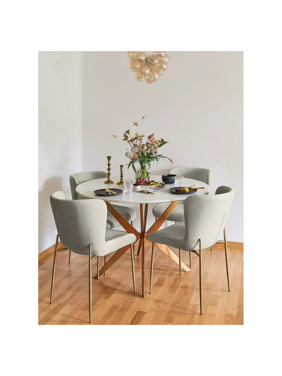 Westwing Collection Samt-Polsterstuhl Tess in Silbergrau, B 49 x H 84 cm