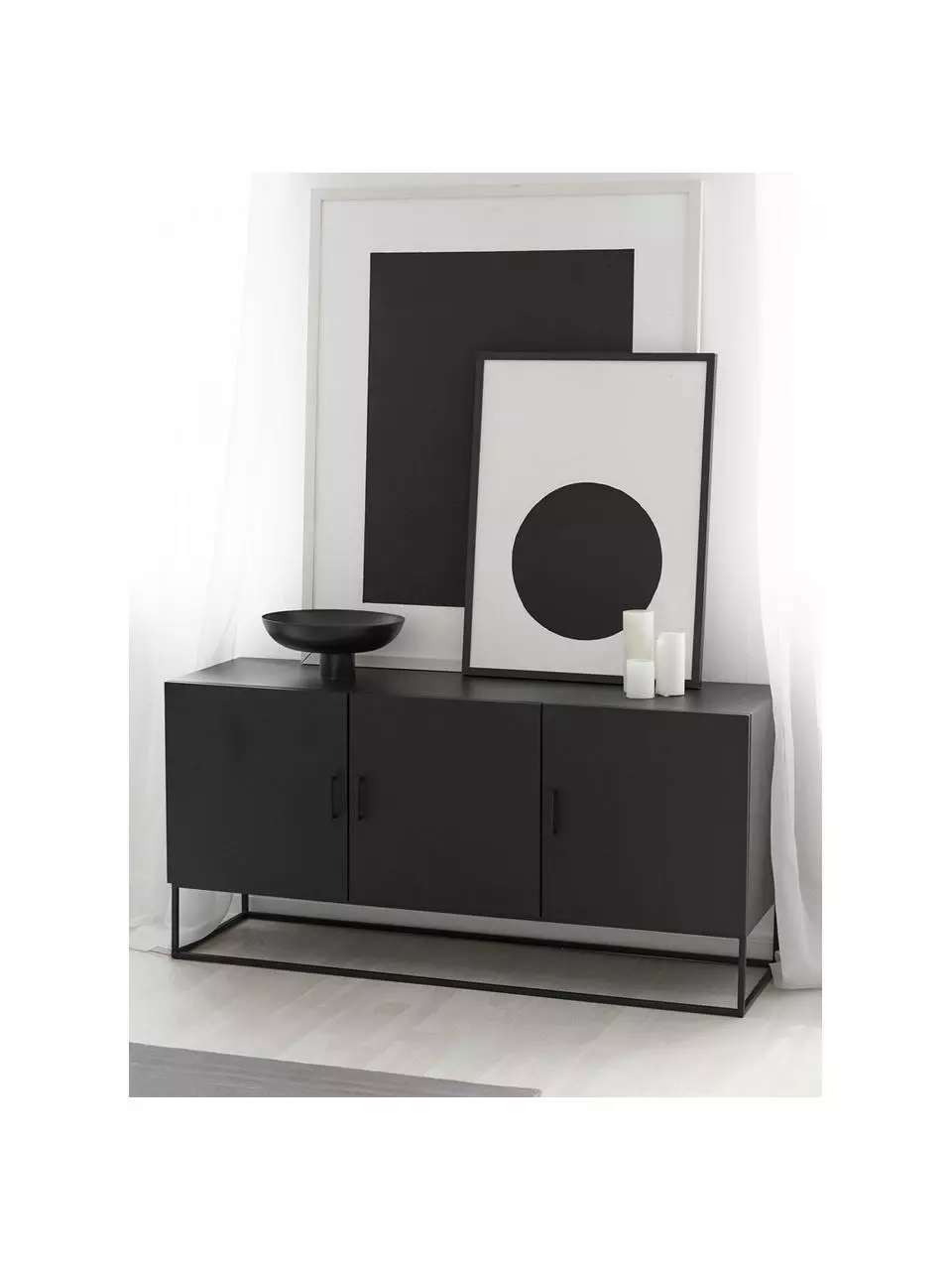 Westwing Collection Schwarzes Sideboard Lyle mit Türen aus massivem Mangoholz, B 150 x H 72 cm